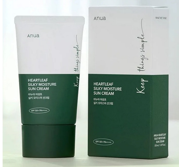 Anua - Heartleaf Silky Moisture Sun Cream SPF50+/PA++++ - Cremă hidratantă de față cu protecție solară ridicată SPF 50