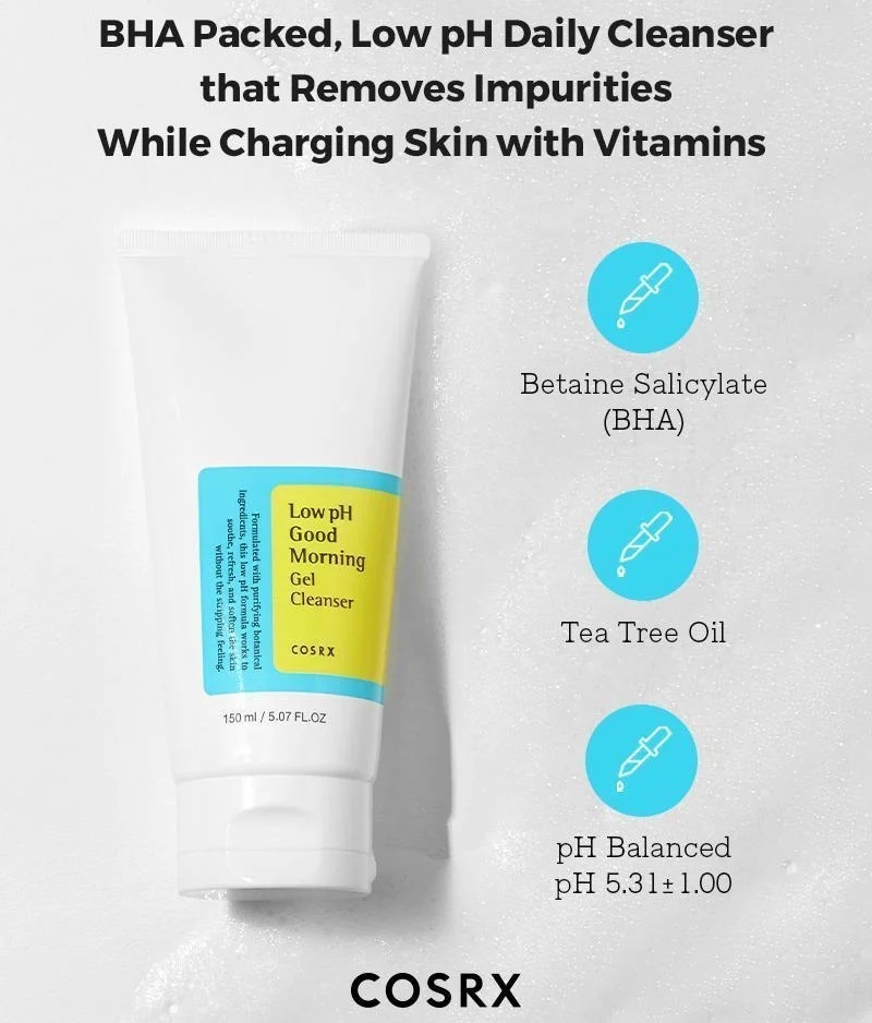 Descoperă COSRX Low pH Good Morning Gel Cleanser – o formulă gel clară, cu pH uşor acid, concepută pentru a curăţa pielea fără a o deshidrata, contribuind la reglarea sebumului şi la reducerea aspectului porilor vizibili. Ideală pentru tenul mixt, gras, predispus la impurităţi şi pori dilataţi, dar de asemenea potrivită şi pentru tenul sensibil datorită structurii blânde.