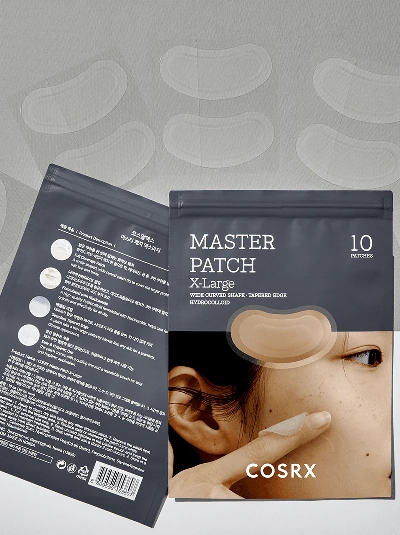 Descoperă COSRX Master Patch X-Large – plasturii hidrocoloidali originali, acum într-o dimensiune mai mare, concepuți pentru zone extinse ale feței cu pori vizibili, coșuri grupate sau inflamații. Formula avansată cu niacinamidă ajută la calmarea și protejarea pielii, în timp ce materialul hidrocoloid absoarbe impuritățile și creează un mediu optim pentru vindecare. Designul mare, flexibil și ultra-subțire se adaptează natural conturului feței, oferind confort și eficiență maximă, zi și noapte.