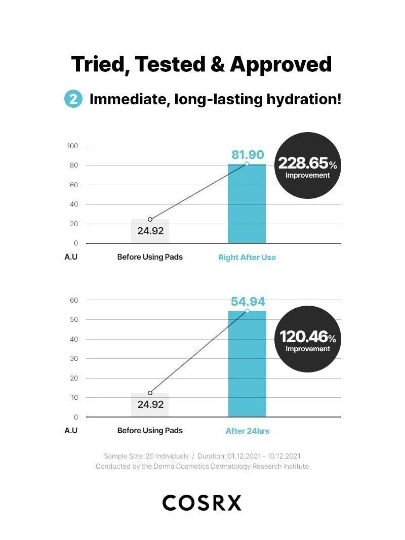 COSRX One Step Moisture Up Pad îţi oferă un boost rapid de hidratare combinat cu exfoliere blândă, într-un format practic şi uşor de utilizat. Este partenerul ideal pentru rutina ta modernă de îngrijire, oferind un ten mai neted, mai suplu şi revigorat fără efort.