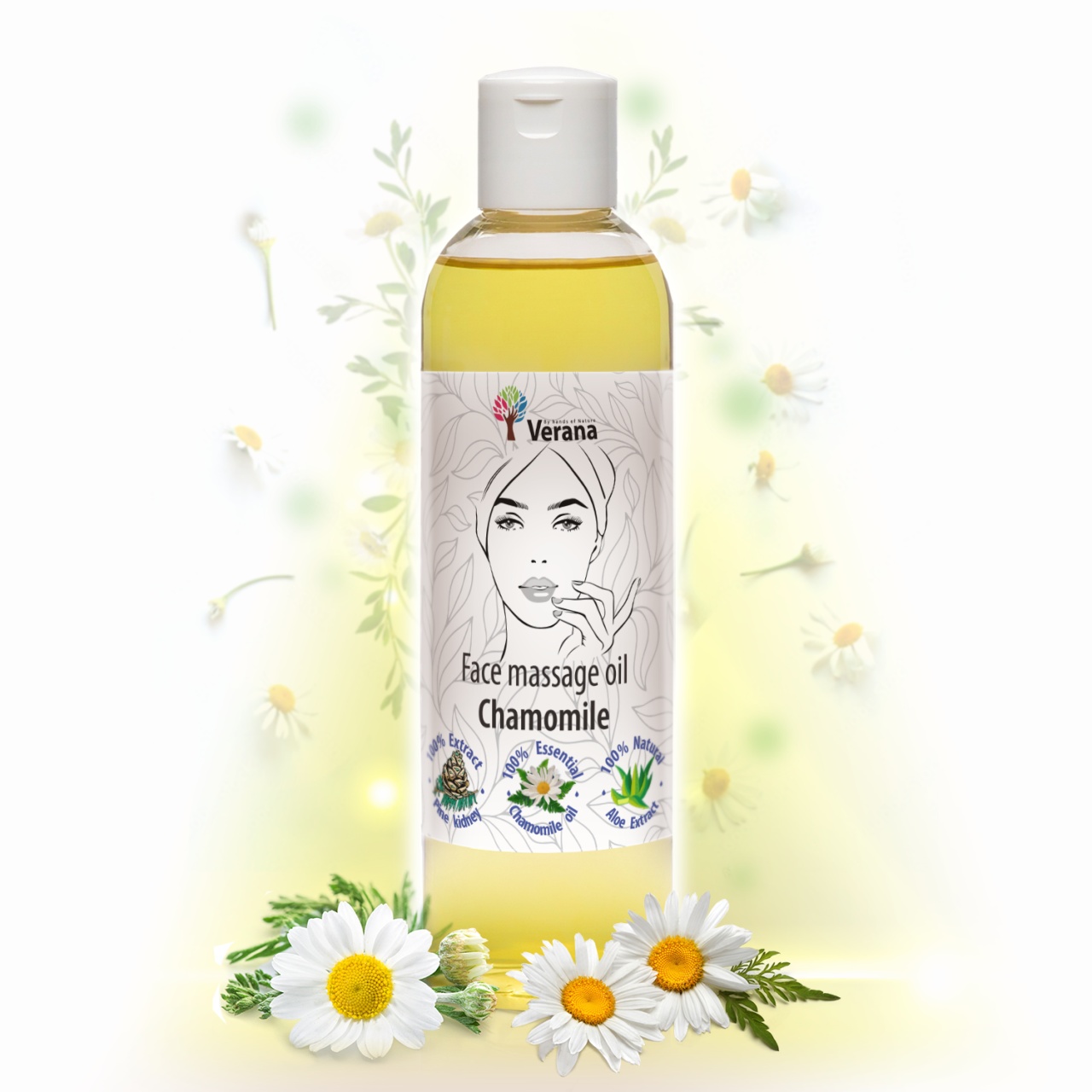 - Componentele unice ale uleiului de masaj facial sunt uleiul esential de musetel si extractele naturale, uleioase din muguri de aloe vera si pin.